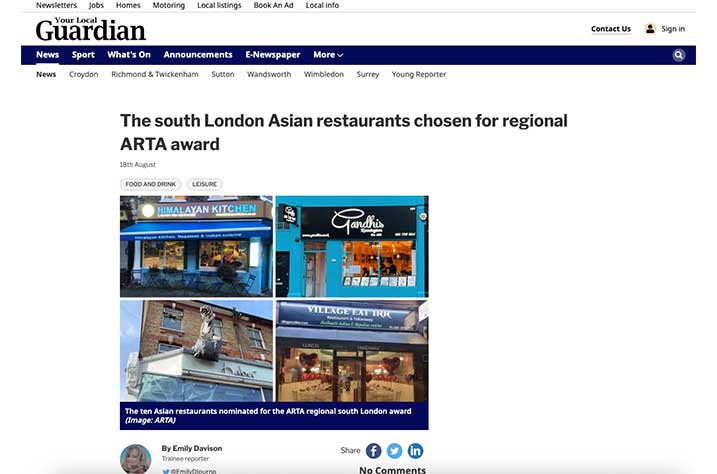 Four south London restaurants win BIG at popular Asian Restaurant and Takeaway Awards